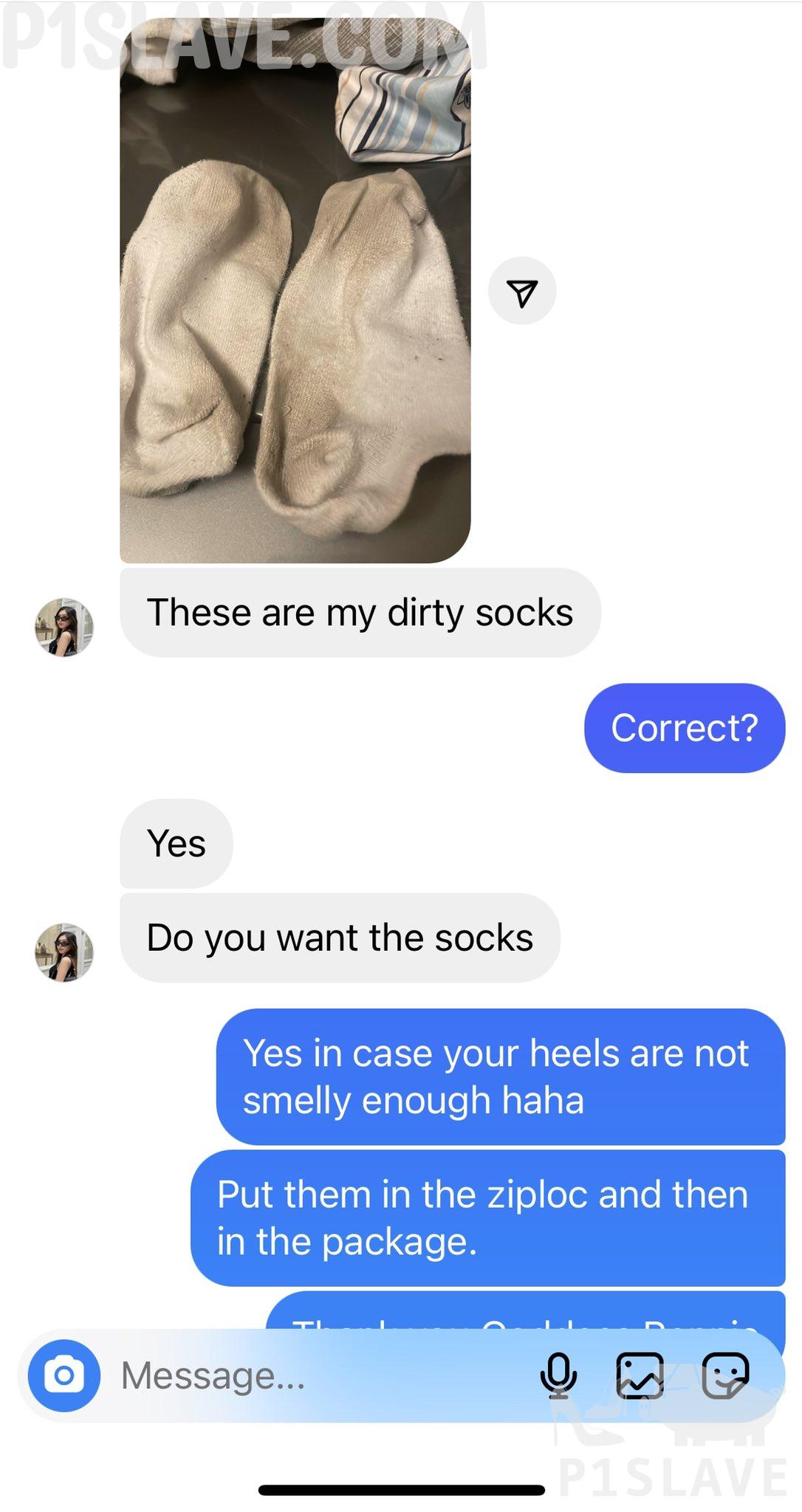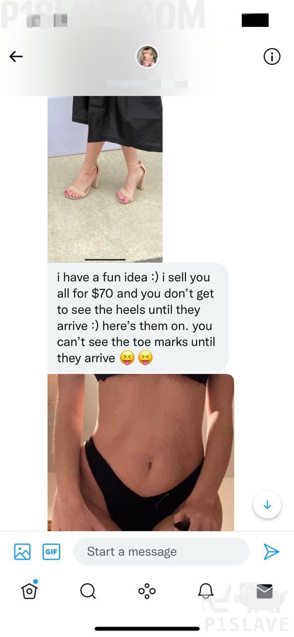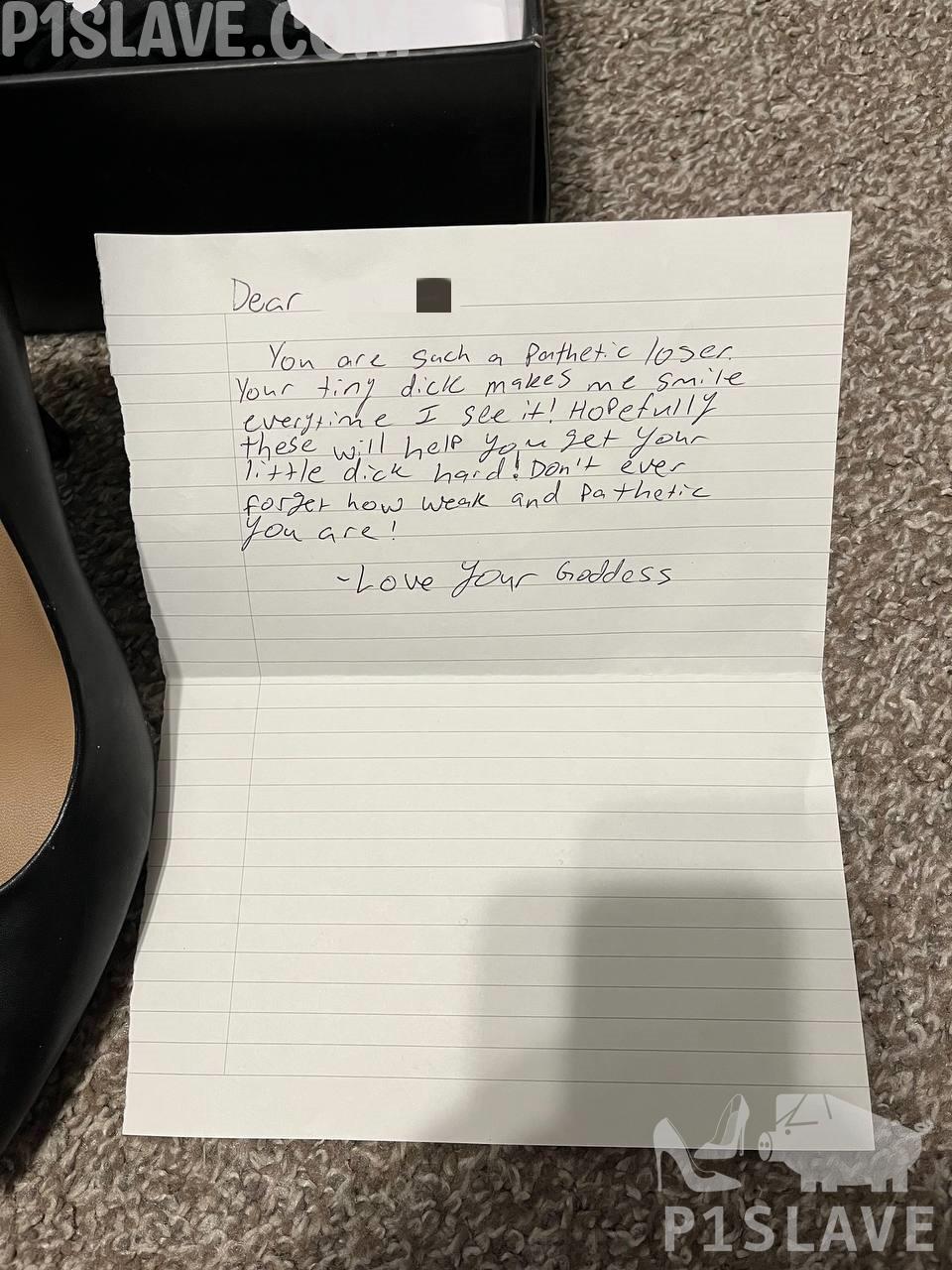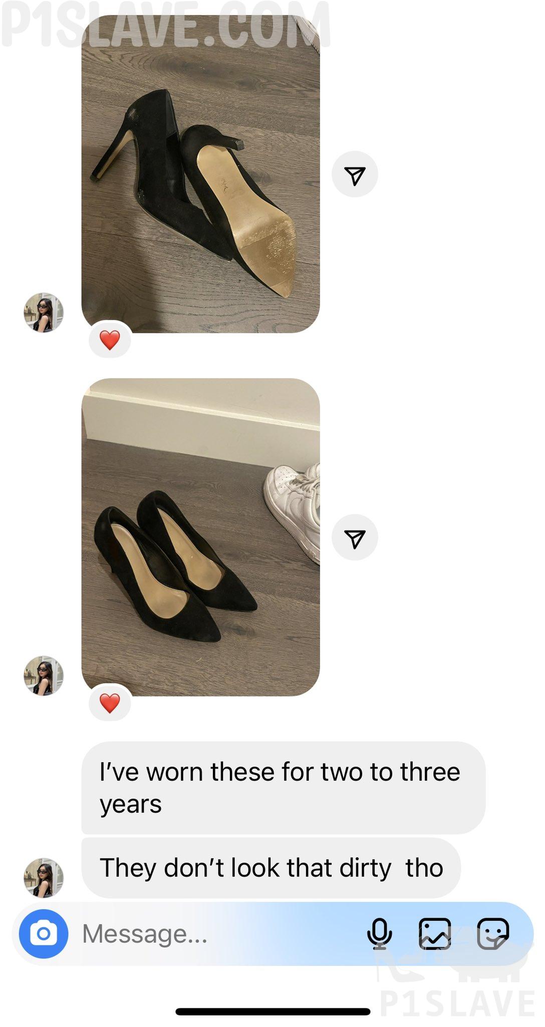 她是个本地的大学生同时在酒吧兼职的,也是个亚欧混血的。疫情期间没机会见面,等疫情结束我想见面的时候她已经隐退了,账号清空也不再回复私信,还挺可惜的。当时还在亚马逊上给她买过一双低跟的皮靴,也就80刀左右的那种便宜货,她拍了个视频给我看,平时也会给我发一些日常的语言羞辱。后来终于在圣诞节前后买了她穿过的高跟凉鞋和棉袜,看聊天记录可以知道她的裸足还挺好看的,并且她说给我的这双她已经穿了7年了。因为疫情加上对我一个陌生人也不放心,她当时就把一个鞋盒放在附近的公园让我去拿,我怀着激动的心情取了回来迫不及待地把头埋进了鞋盒,味道非常棒特别是白色棉袜的味道,高跟鞋上面还隐约有脚趾印,只不过凉鞋味道散的比较快,现在味道就比较淡了。鞋盒上放了一个粉红的便签写着:好好拿去玩和崇拜我的高跟鞋吧,可悲的失败者。简单的一句话就让我在地上要犯贱抽搐了。