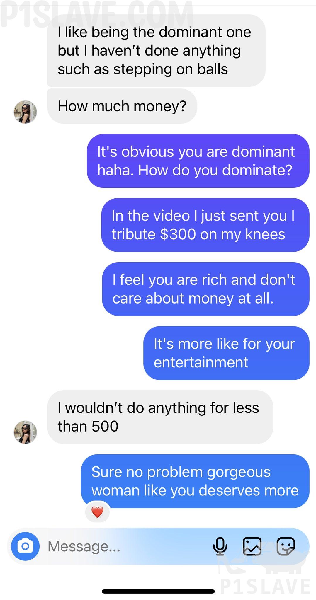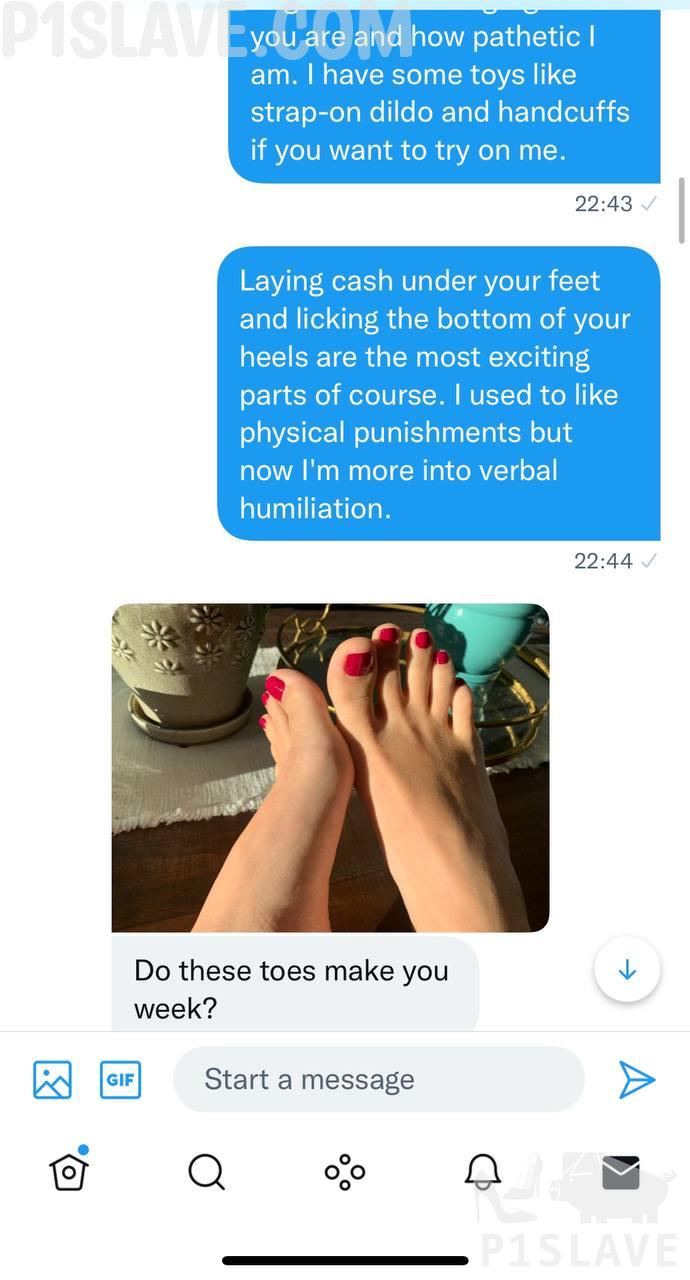 发了这条以后还被别人鄙视了,也可能是置顶的帖子说要卖片众筹买海参补补身子,给某个女网友私信赞美了几句,对方直接说看了下你的推特感觉应该是个没钱的穷逼,不要给我私信了。当我说视频里的红底CL高跟鞋是我买给模特女神的时候,情况又发生了反转,她说你怎么知道我喜欢CL啊,并告诉我自己喜欢的一款想要我买给她哈哈(我说要给你买了吗),结合前面的聊天看真的很下头了,聊个天对别人基本的尊重也没有,而且还不是职业女王,顶多就是个美腿博主。想要我买鞋的白妈都得排队,她们不但对我很尊重,还没事哄哄我开心给我一点小奖励,再给我发点语言羞辱语音和视频(对人格的尊重和性癖好上的羞辱是两码事情,我甚至有时都觉得模特女神对我的尊重有点过了头)而你一个陌生人不懂尊重,上来就狗眼看人低以为自己是啥玩意儿,我凭什么给你买啊。有时和国内的一些女主或者女生交流,上来就PUA这一套进行打压,让我有点无语我也不是傻子。