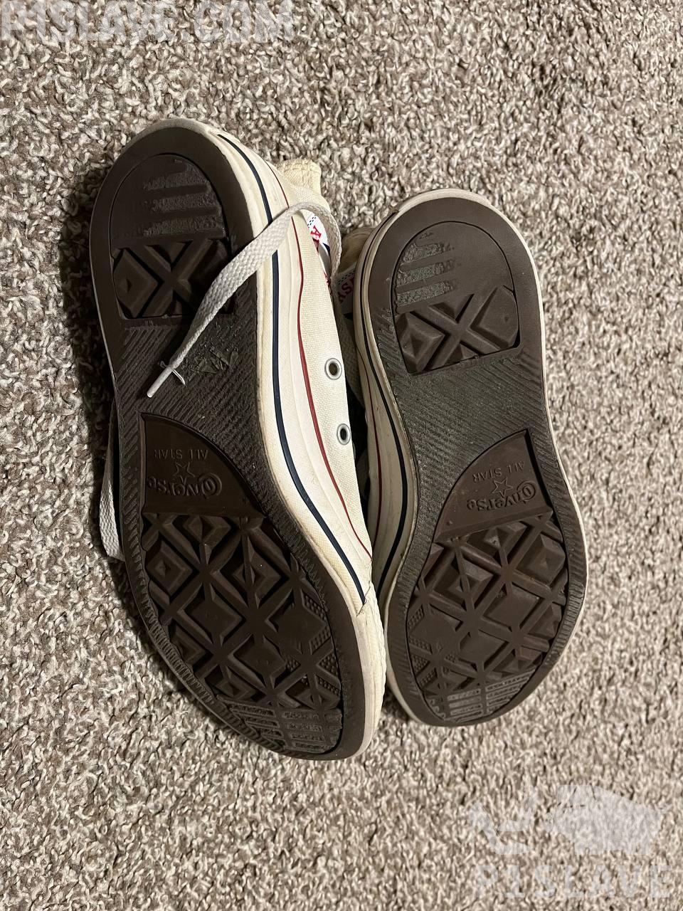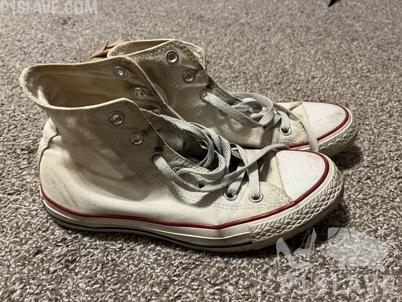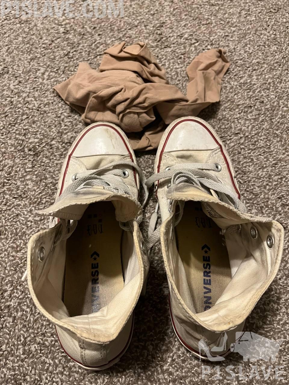 - 第一双 - 匡威运动鞋她穿了四五年,是第一次去她学校空教室提心吊胆的被调教以后她送给我的,味道实在是太赞了而且很容易可以挂在脸上不会掉下来,这样就可以一边看着和她的调教视频,一边闻着模特女神的运动鞋,还一边手冲到两眼翻白。有两个她穿着匡威的几秒钟小视频:视频一,视频二