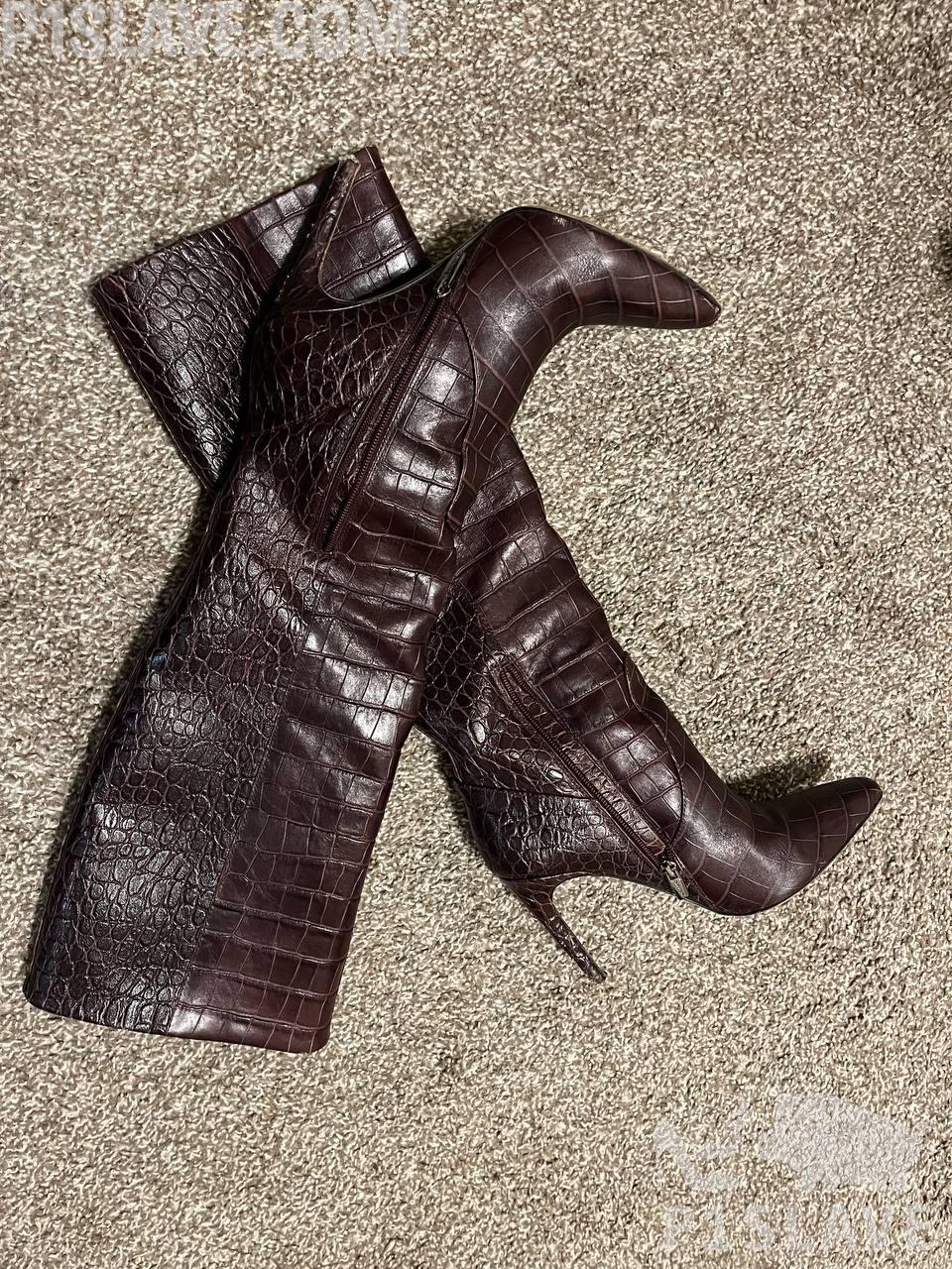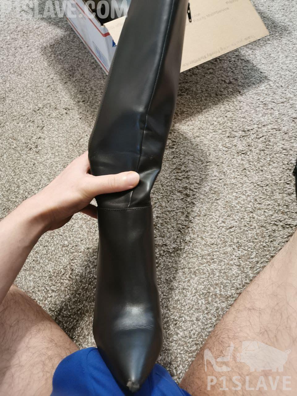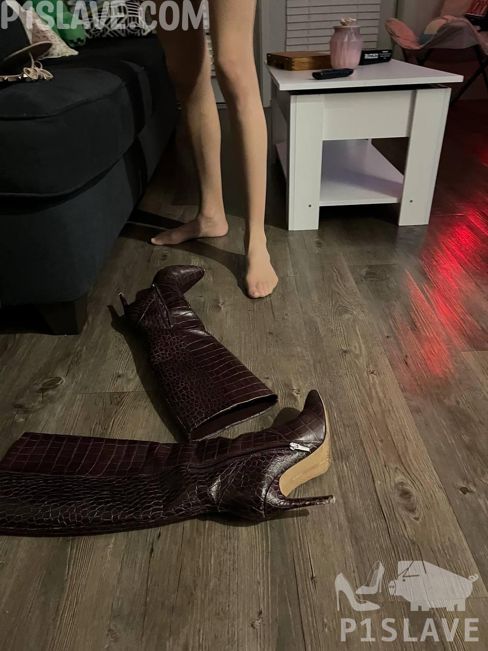 - 第二双 - 另外一双皮靴其实也是我去年买的一双便宜货,所以一年不到就快穿坏了,有个调教视频是专门舔这个皮靴鞋底的,还没空整理发布出来。那天调教完以后,模特女神就当场把皮靴送给我了,还拍了一些让人喷鼻血的腿照在下面,简直开心到飞起!