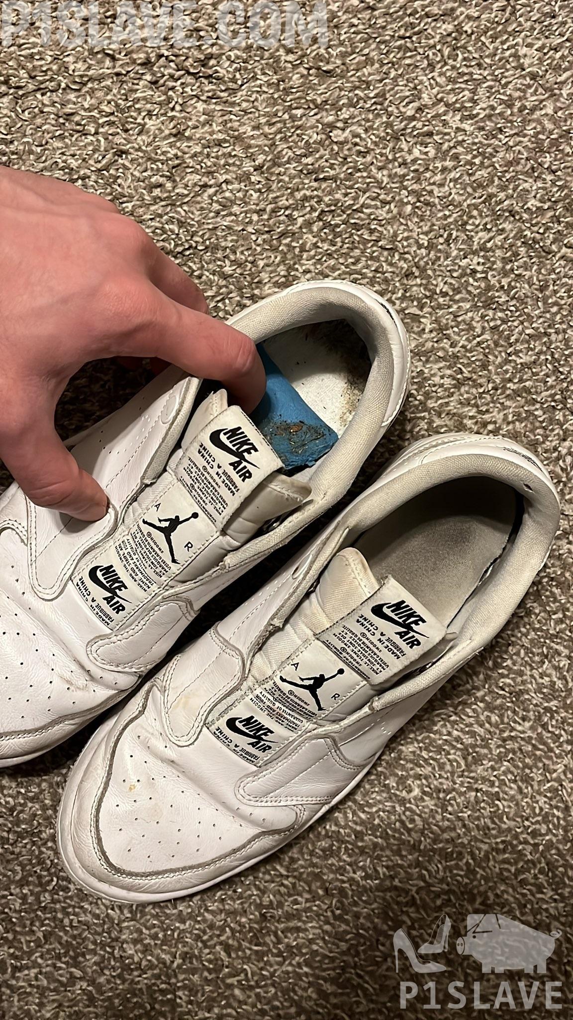 - 第三双 - 模特女神在母亲节前后又送我了一双AJ,味道非常大,模特女神说在机场光脚穿了两天没换,里面全部都是脚汗,扒开鞋垫看里面真的也都是藏污纳垢,非常对我的胃口。当时是母亲节的时候去她公寓调教,进门就看到客厅中央摆着这双鞋,模特女神笑着说是给我的礼物,她要搬家了就正好整理出一双鞋子送给我。这个AJ球鞋的味道真的是上头让我欲罢不能。我后来都直接把鞋放桌上,没事就拿起来闻一闻提神醒脑,后来撸多了都不敢放身旁了,看到就容易起淫欲,身体有点吃不消了!